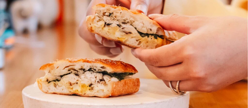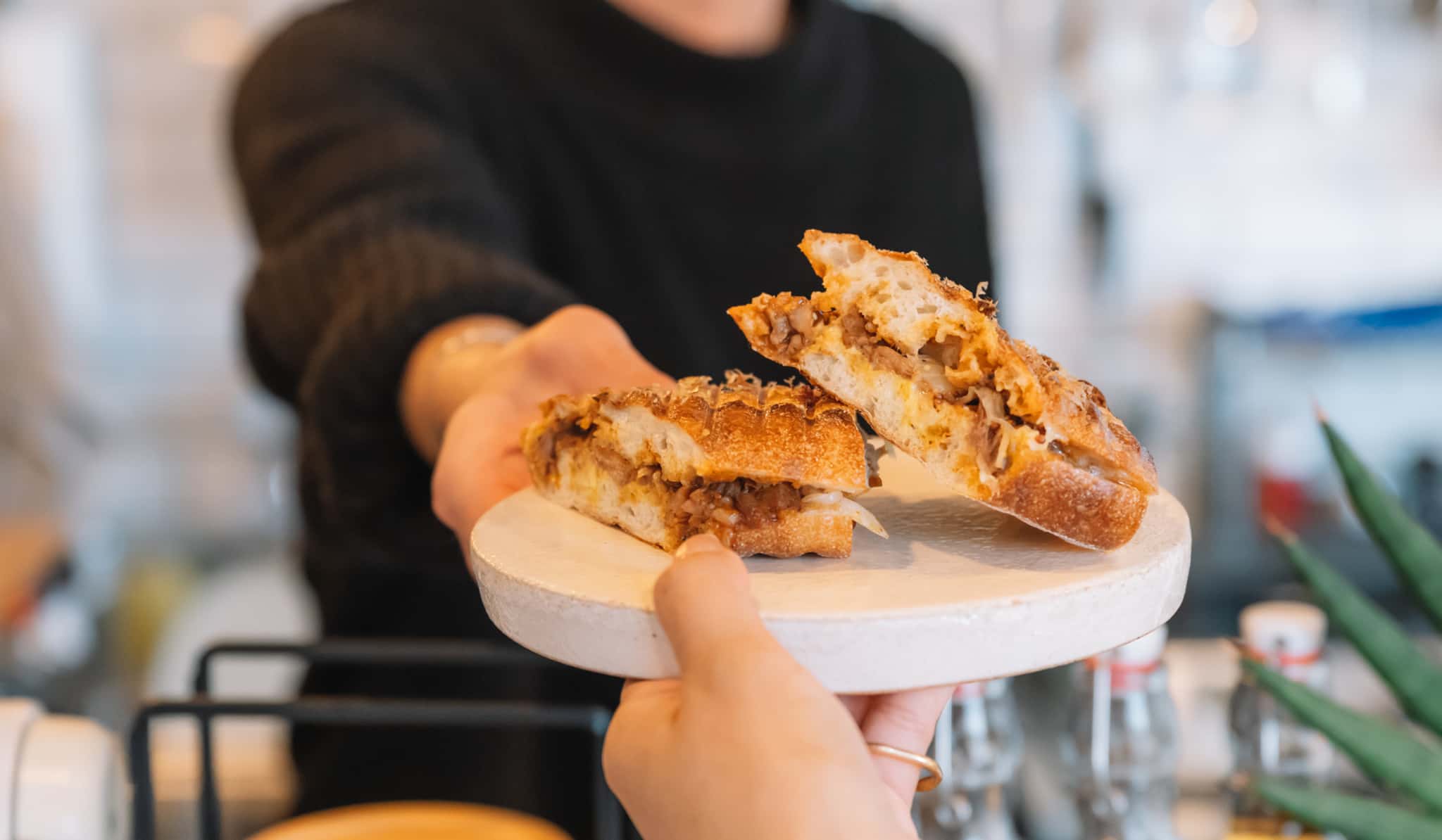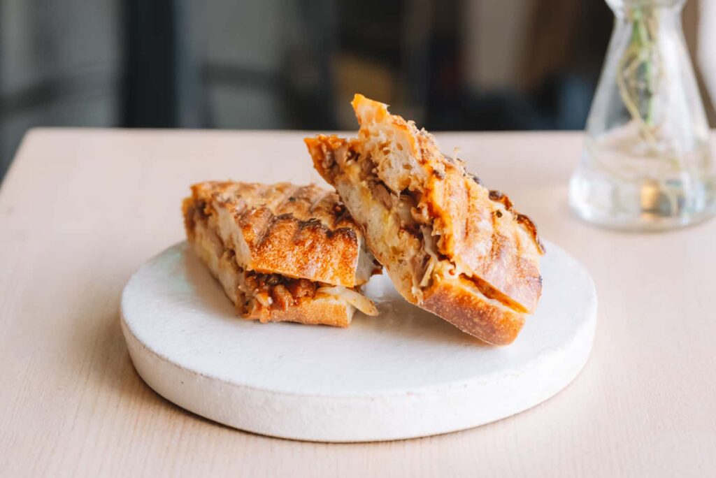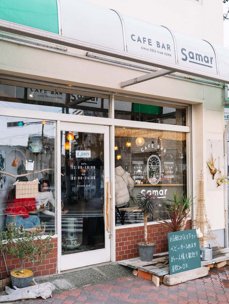 お昼にちょうどいいサンドイッチは、オリジナル感満載の「サマルサンド」(900円)が人気。フランスパンを使ったホットサンドで、豚肩ロースにスパイスをからめ、低温調理でホロホロに仕上げたプルドポークがたっぷり入っており、オニオンやチーズ、BBQソースが引き立てる。トルコの名物という「塩サバサンド」(850円)には、塩焼きのサバにガリと大葉をプラス。意外な食材の取り合わせで好評を得ている。イートインならホットサンドとポテト、サラダ、ドリンクがセットになったワンプレートランチやカレーとドリンクがセットになったカレーランチもおすすめ。陶器市を巡って買い集めた丹波焼など、料理が提供される器にも注目したい。