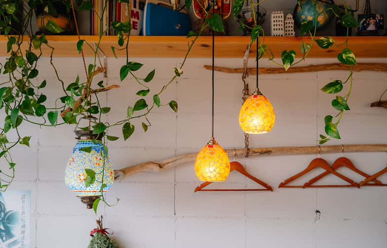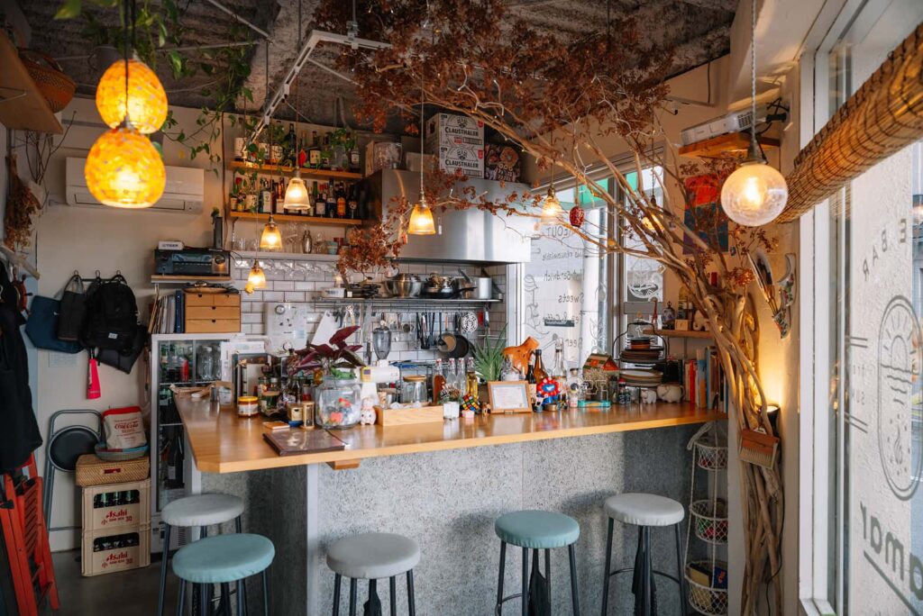 インテリアにもこだわった店内は、こなれたおしゃれ感が素敵。センスの良いインテリアに混じって、ふと目を向ければガチャガチャの景品が顔をのぞかせていることも。オーナーの感性でまとめられた遊び心溢れる空間は、どれも個性的でどこか懐かしい。一人で切り盛りしているため「お待たせする時間も楽しみに変えたい」という思いが、随所に込められた遊び心あるディテールに反映されている。