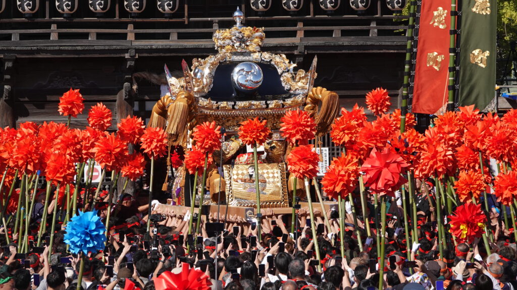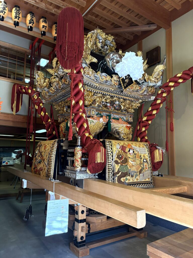 絢爛豪華な装飾もそのまま、四隅の伊達綱も勇壮です。間近で見ると、より迫力を感じます。