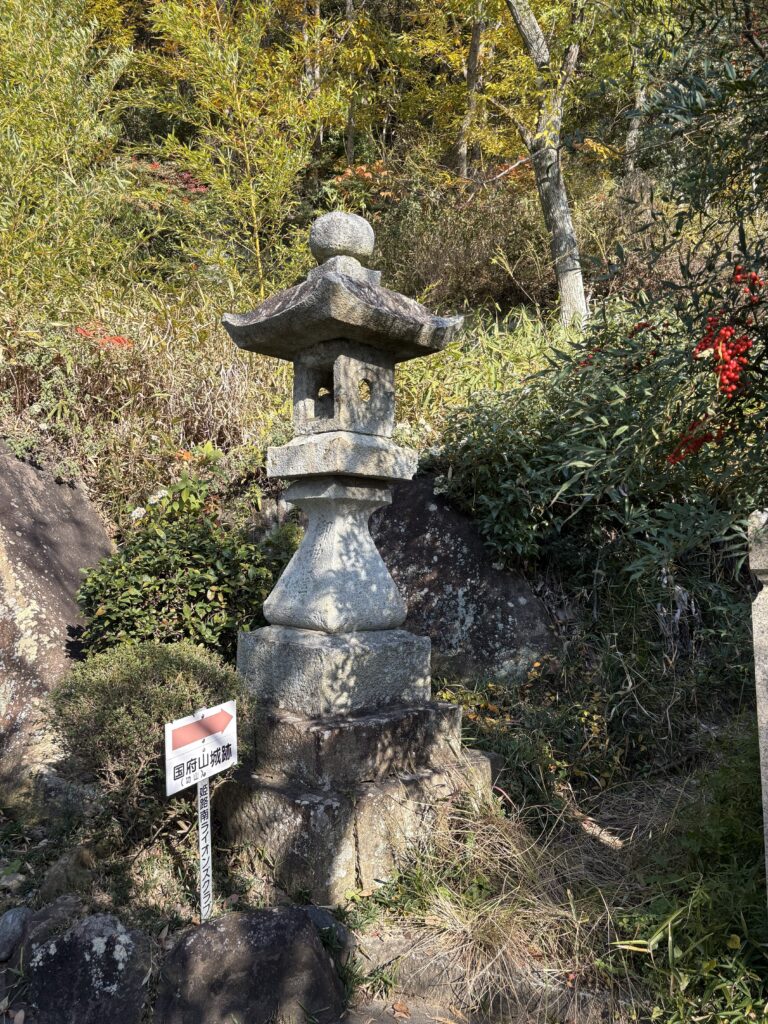 神社の石段を登り、右手にある灯籠の横から国府城へのルートが始まっています。