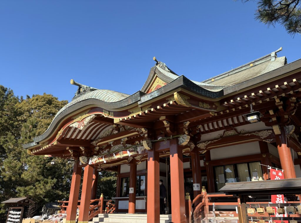 門をくぐって、朱塗りの美しい社殿へ。