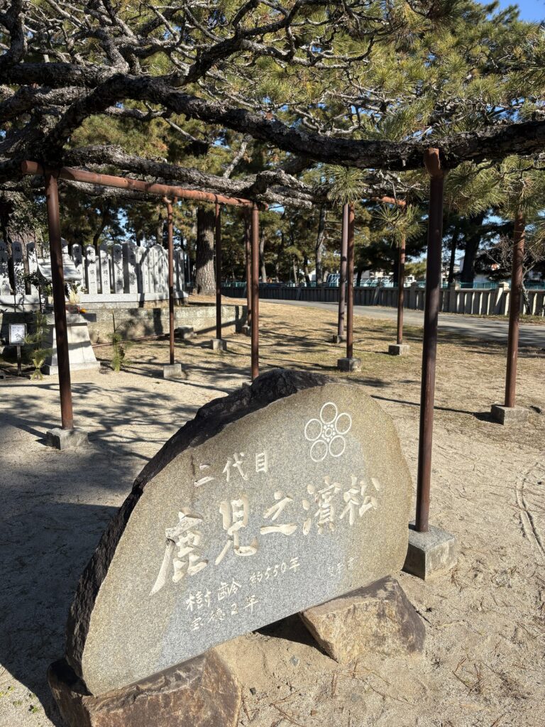 境内には、菅原道真公のお手植えの松と伝えられる「鹿児の浜松」の二代目があります。