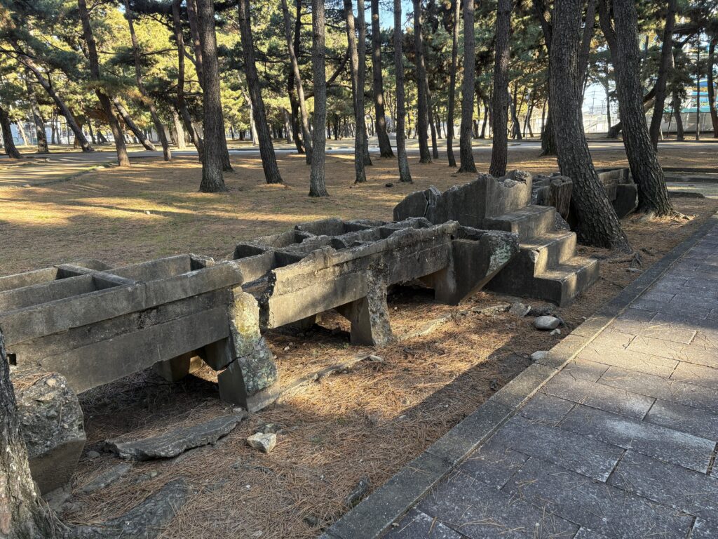 松林の中には、戦争の遺構が保存されています。