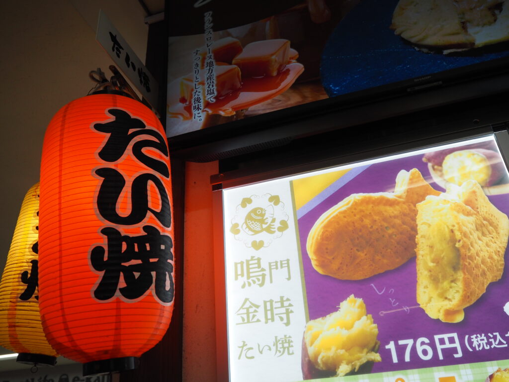 手前の黄色いあんがはみ出ているのは「鳴門金時たい焼」(190円)。
