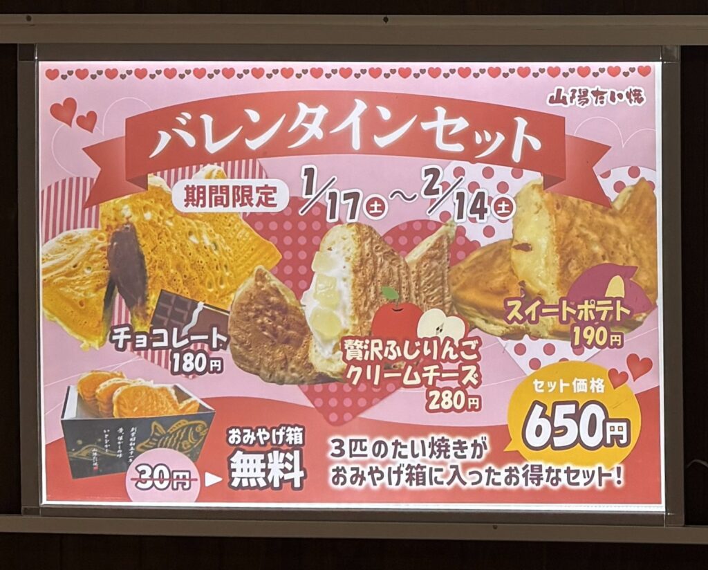 期間限定のたい焼もあり、あれこれ選ぶのも楽しい。