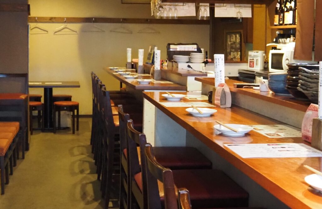 店内に入ってすぐがカウンター席、奥がテーブル席です。