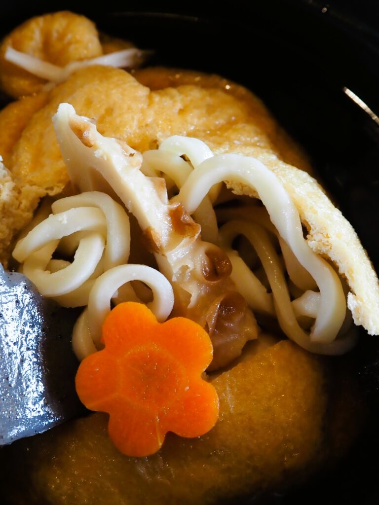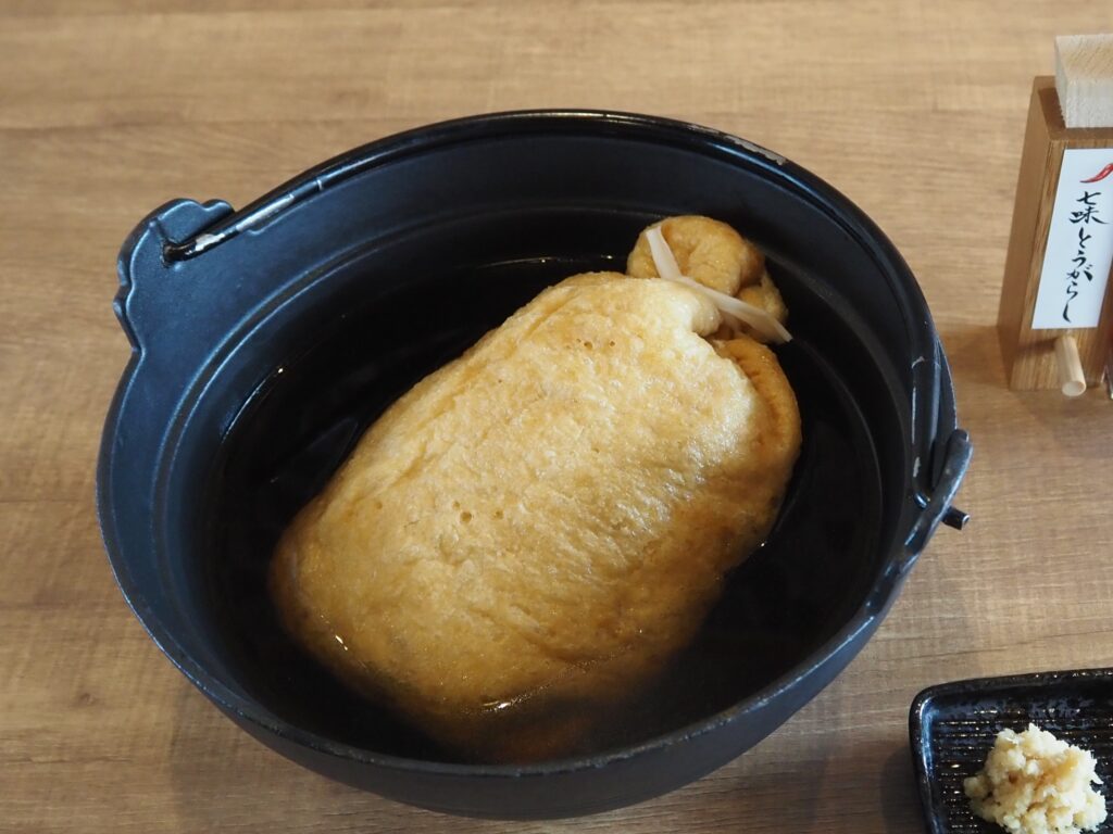 たくさんのおでんの具、うどん、お揚げ…、と初めてのお料理の上、どう食べてよいのかわからないほどボリュームがあって、最初はとまどいましたが、すべておいしい!