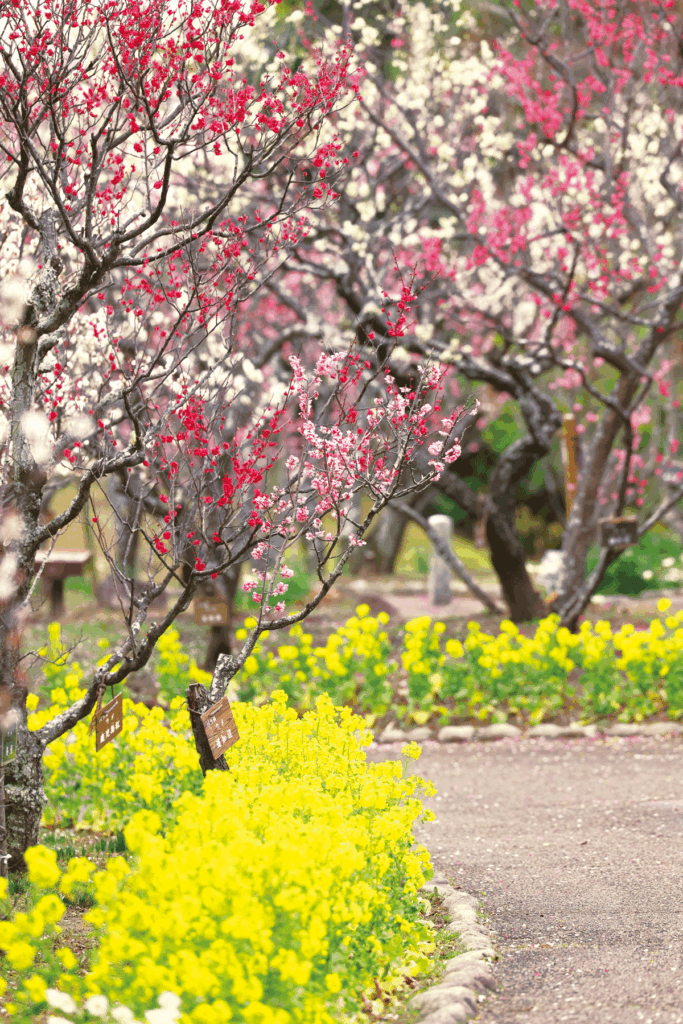 しだれ梅や白加賀など遅咲きの品種も充実しており、3月下旬まで長く観梅できるのも魅力。