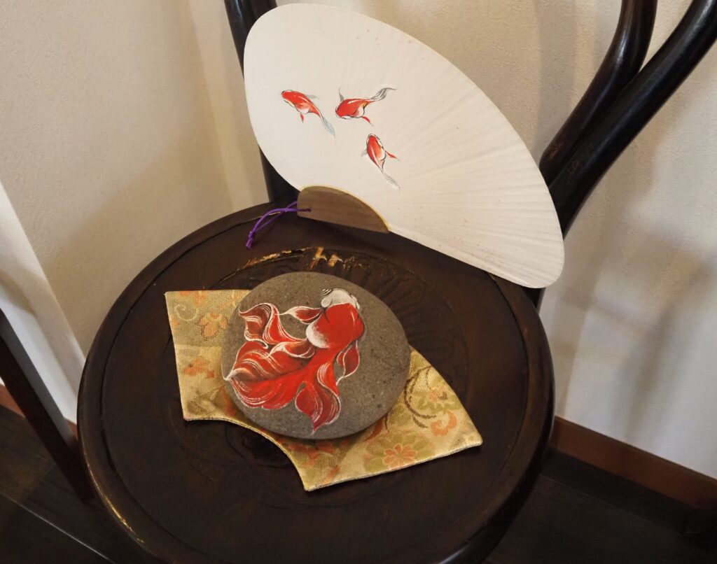 「垂水の作家さんの作品もありますよ」と見せていただいたのは、“金魚絵師”岩田明久さんの作品です。