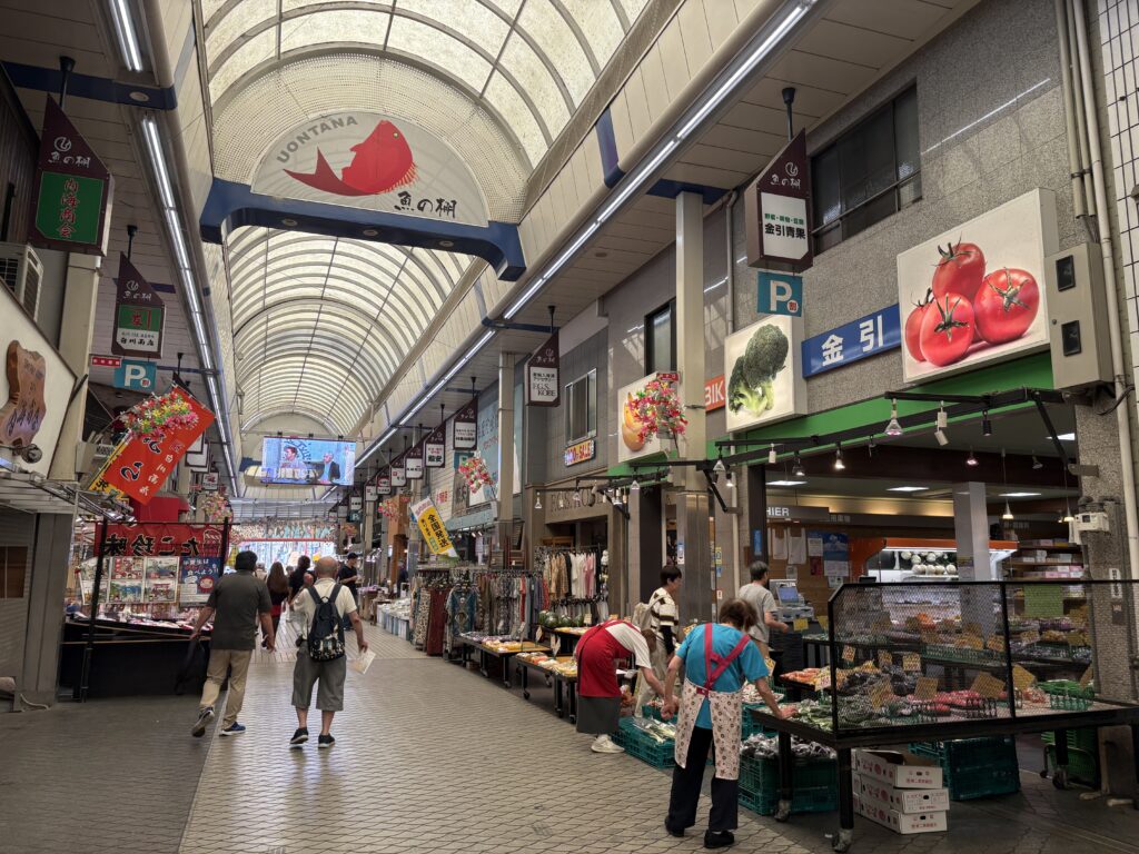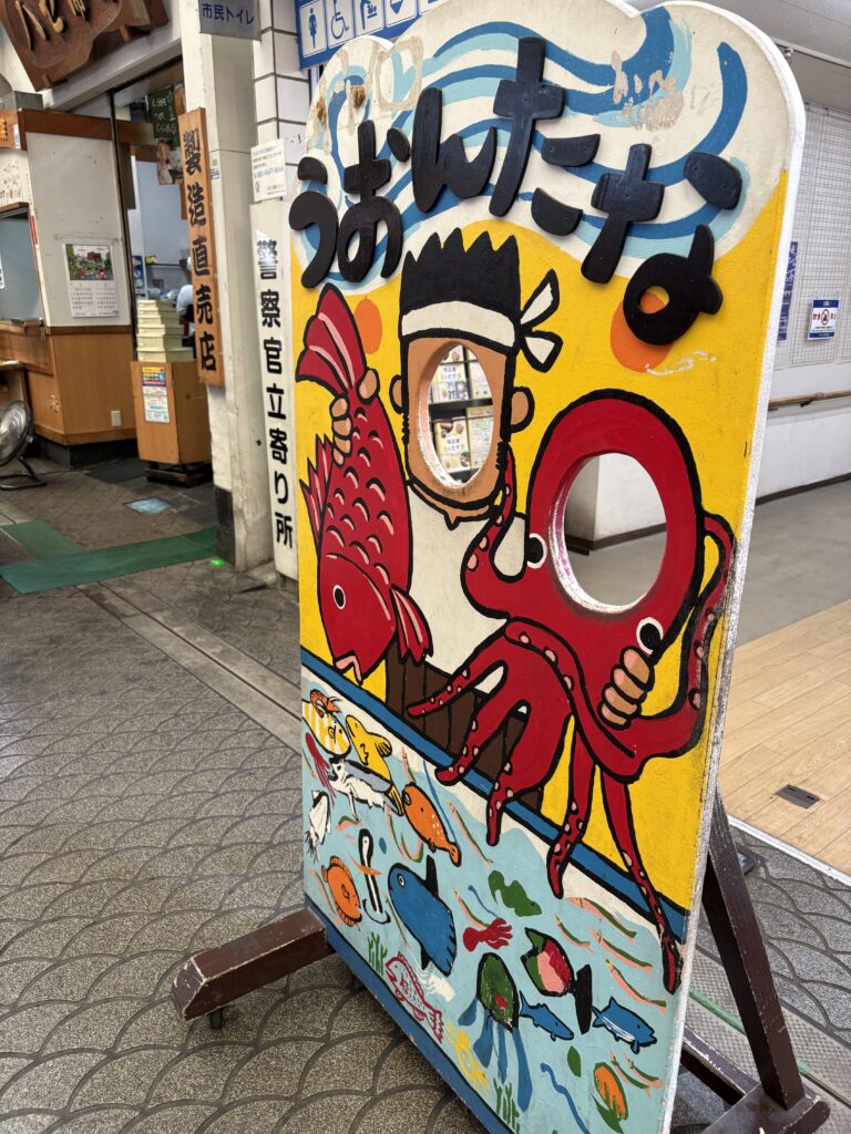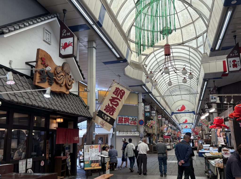山陽明石駅から南へ6分ほど歩くと、魚の棚(うおんたな)商店街があります。