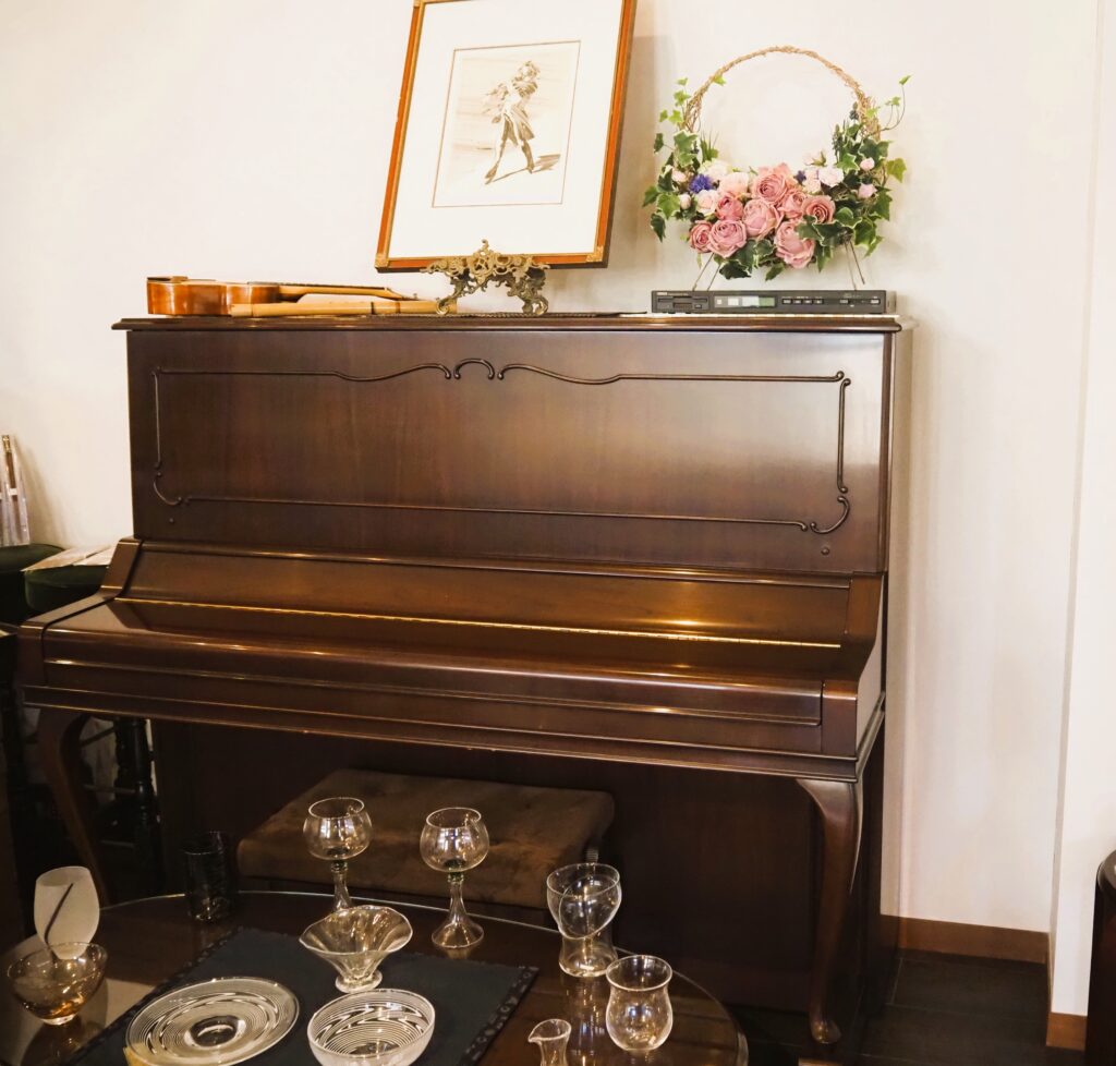 アップライトピアノも完備しているので、クラシックやジャズなどのミニコンサートが行われることも。